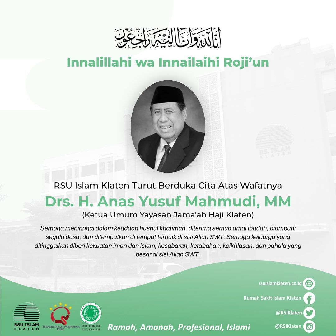 Keluarga besar RSU Islam Klaten turut berduka cita atas meninggalnya Drs. H. Anas Yusuf Mahmudi, MM