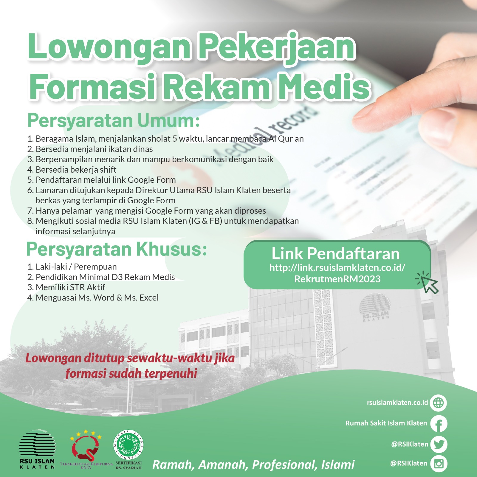 Pengumuman RSU Islam Klaten